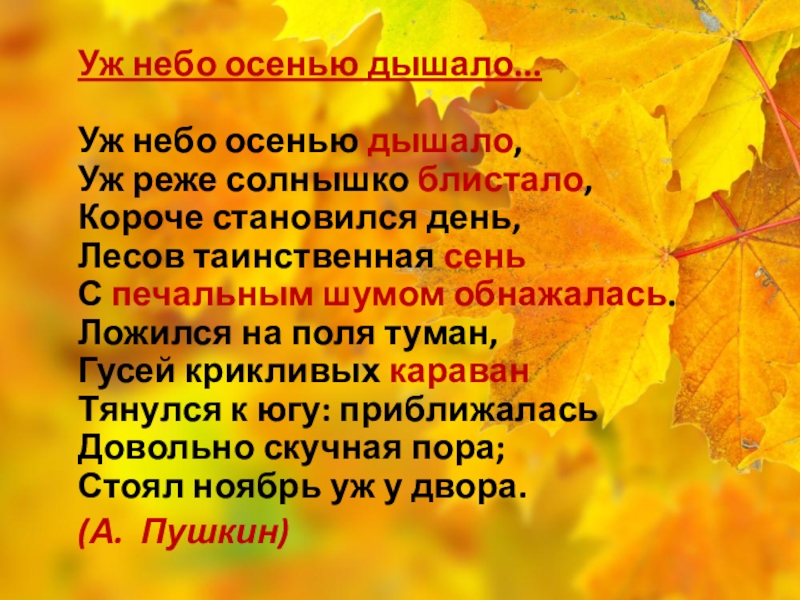 Слайд 14Уж небо осенью дышало...