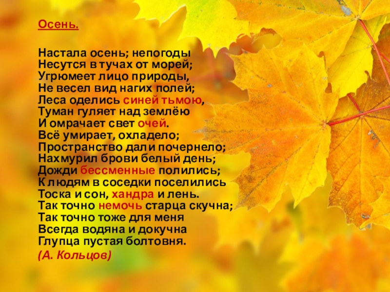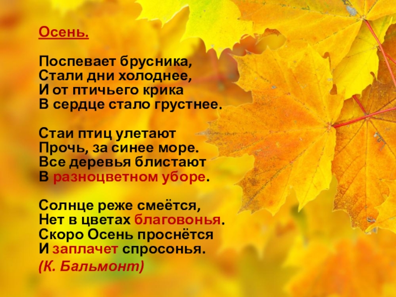 Слайд 34Осень. Обсыпается весь наш бедный сад.