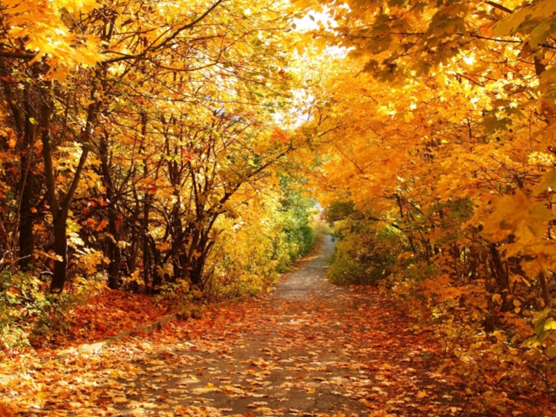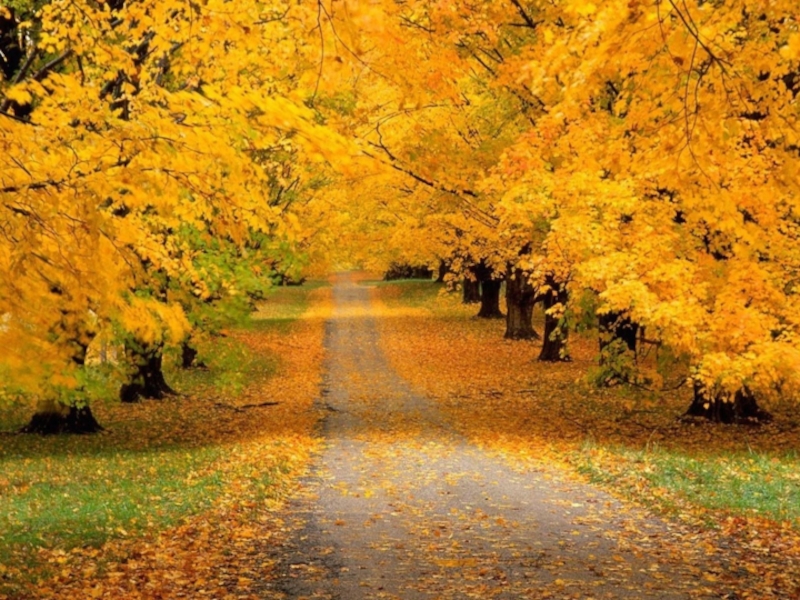 Ярко - жёлтая листва.
