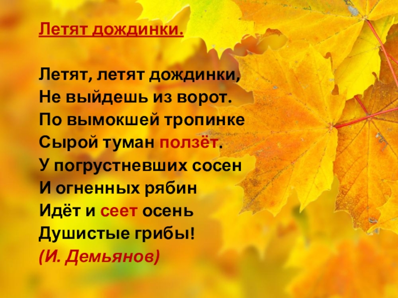 Листья жёлтые летят.