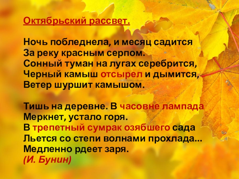 Слайд 28Октябрьский рассвет.