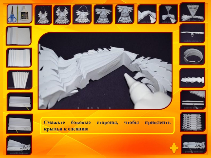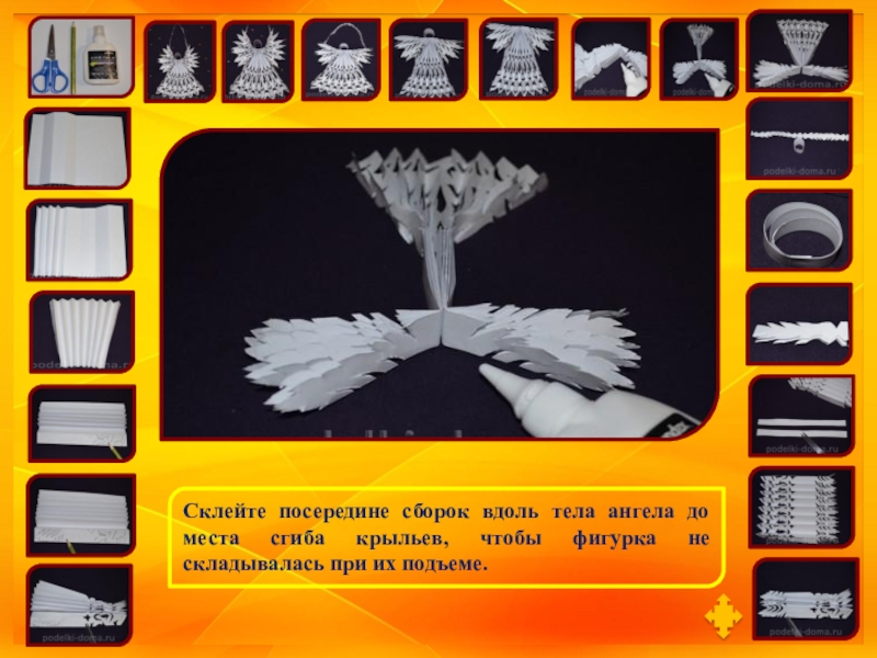 Слайд 18Склейте посередине сборок вдоль тела ангела до места сгиба крыльев, чтобы