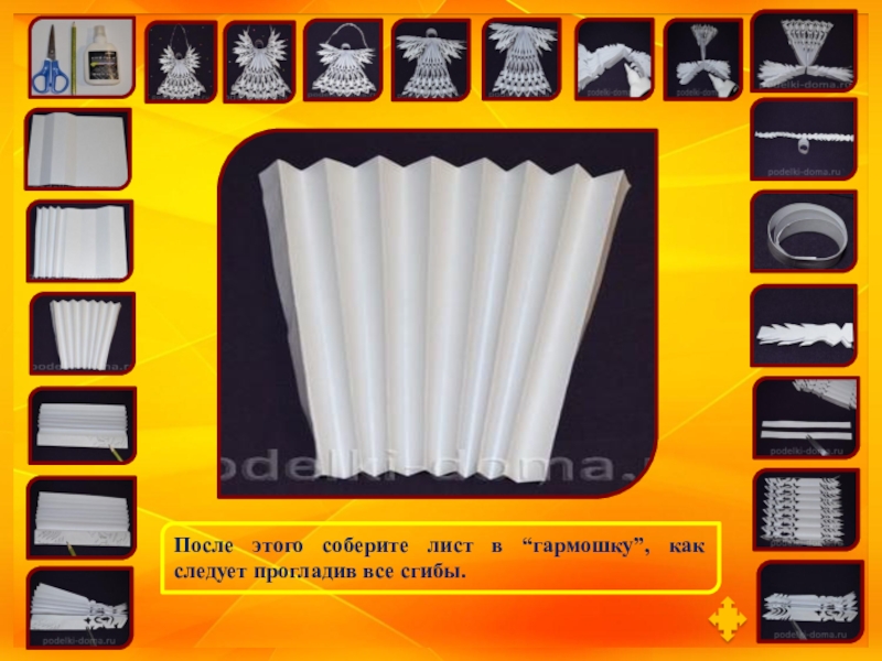Слайд 7После этого соберите лист в “гармошку”, как следует прогладив все сгибы.