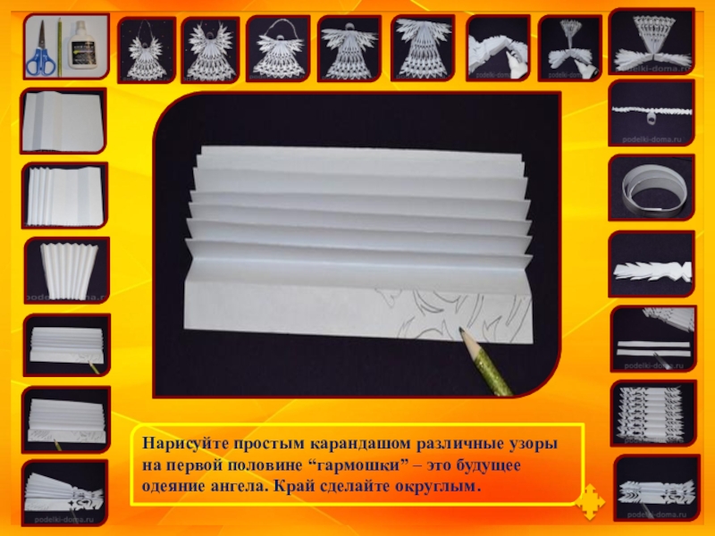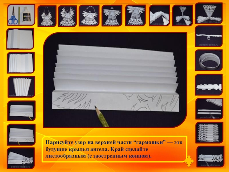 Слайд 9Нарисуйте узор на верхней части “гармошки” — это будущие крылья ангела.