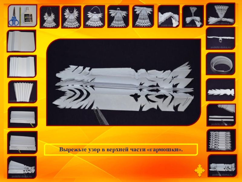Слайд 11Вырежьте узор в верхней части «гармошки».