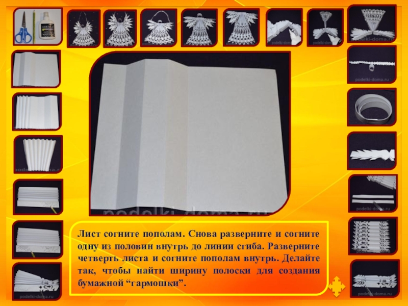 Слайд 17Переходим к оформлению фигурки ангела. Рассчитайте середину «гармошки». Для удобства считайте
