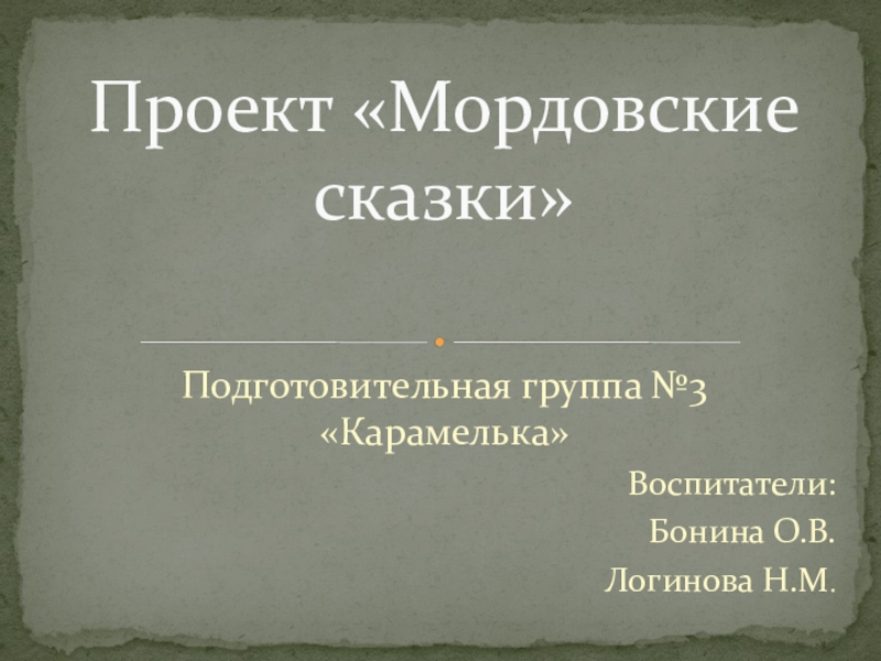 Подготовительная группа №3 «Карамелька»Воспитатели:Бонина О.В.Логинова Н.М.Проект «Мордовские  сказки»