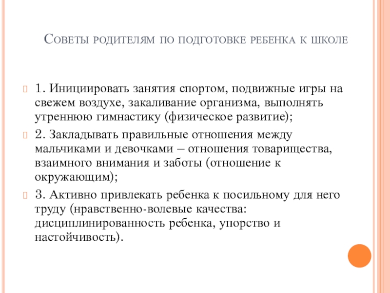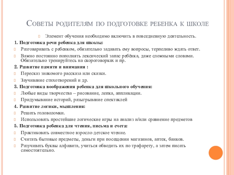 Слайд 7Советы родителям по подготовке ребенка к школе