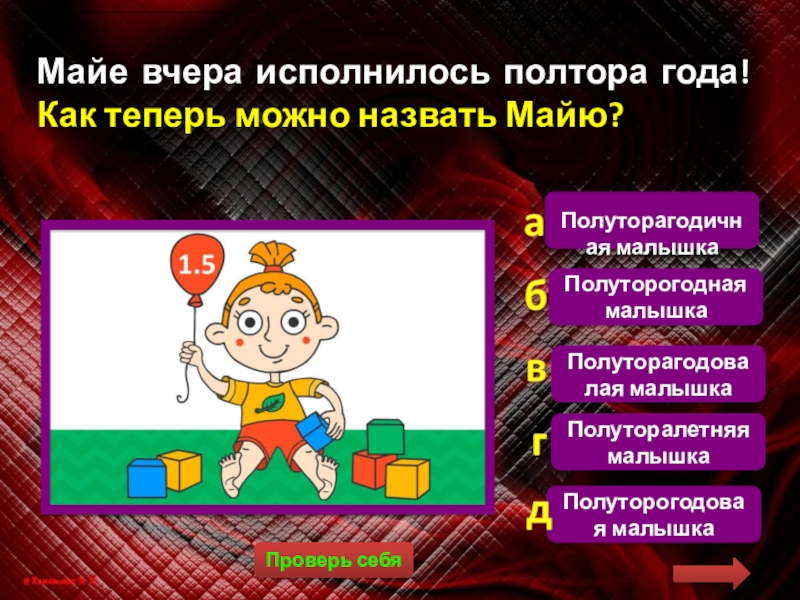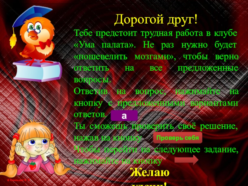 Ответив на вопрос, нажимайте на кнопку с предложенными вариантами ответов.