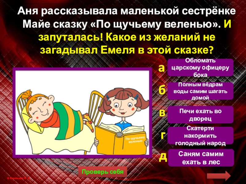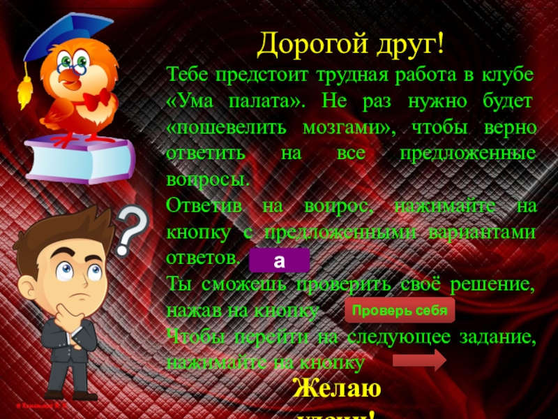 Ответив на вопрос, нажимайте на кнопку с предложенными вариантами ответов.