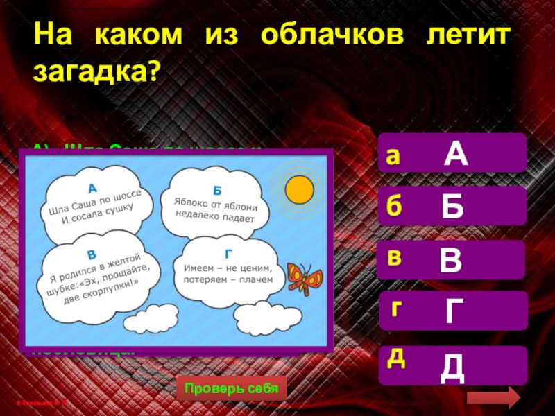 На каком из облачков летит загадка?