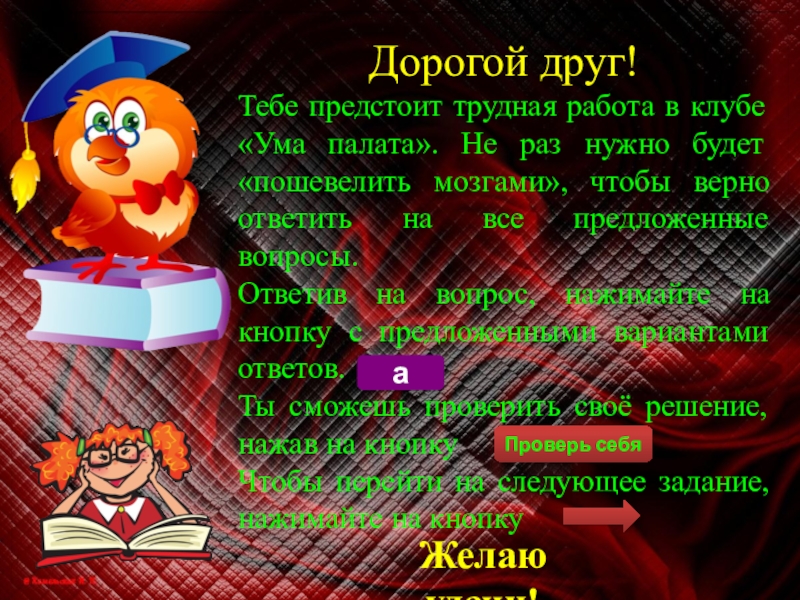 Ты сможешь проверить своё решение, нажав на кнопку