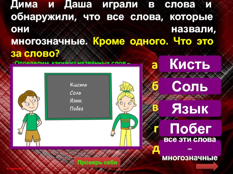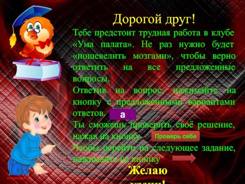Ответив на вопрос, нажимайте на кнопку с предложенными вариантами ответов.