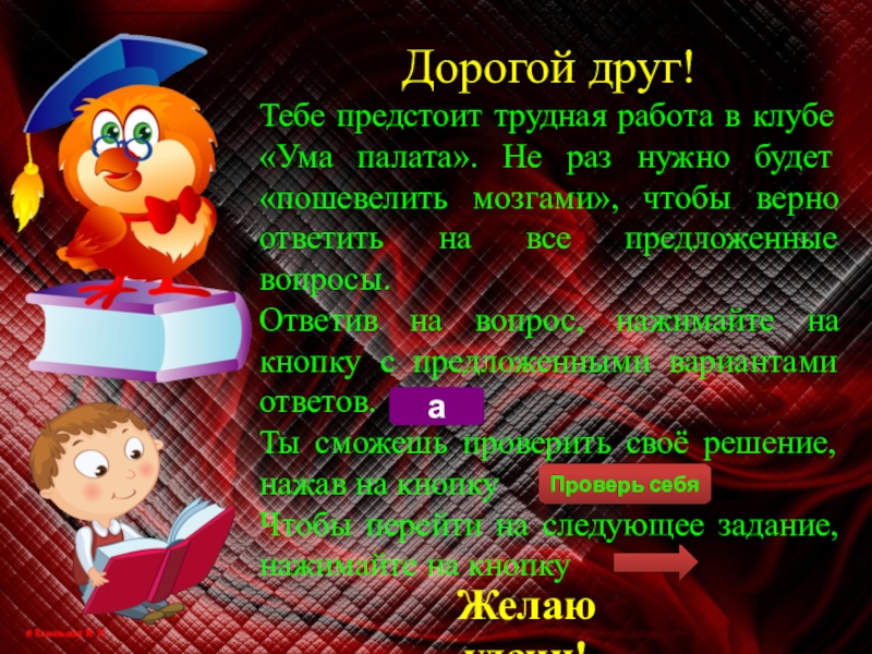 Ты сможешь проверить своё решение, нажав на кнопку