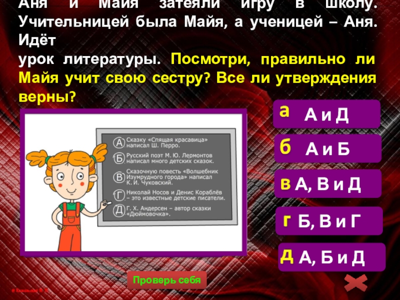 урок литературы. Посмотри, правильно ли Майя учит свою сестру? Все ли утверждения верны?
