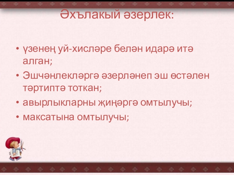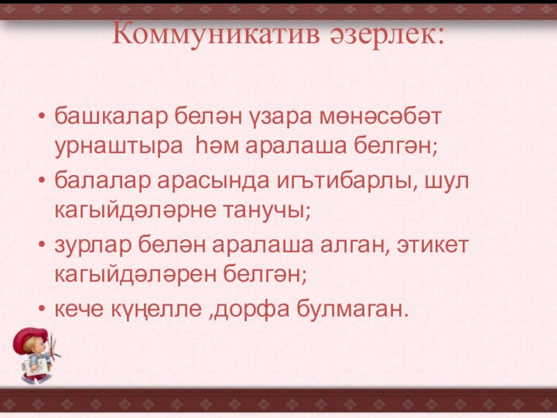 -гаиләдә һәм мәктәптә иминлеккә ия булган;