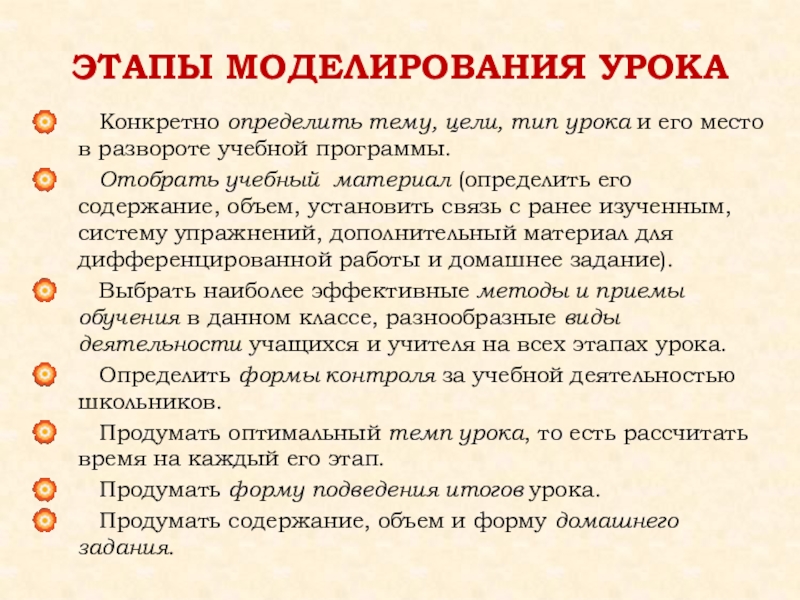 на основные этапы урока