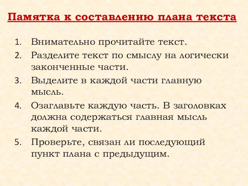 Слайд 41Памятка к составлению плана текста