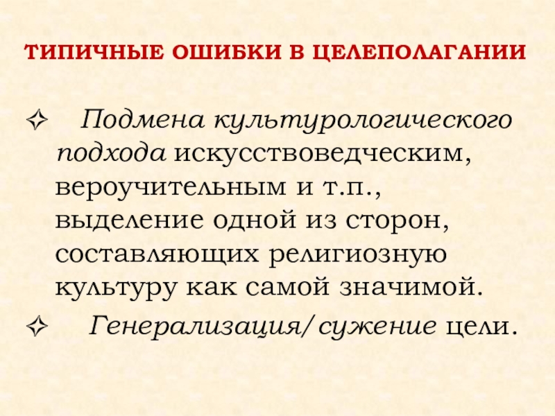 Подмена культурологического подхода искусствоведческим, вероучительным и