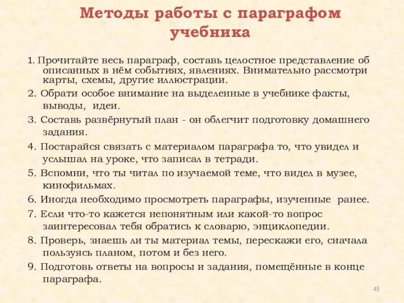 Слайд 45Методы работы с параграфом учебника
