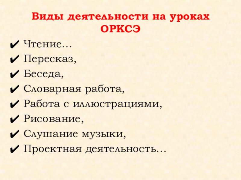 Виды деятельности на уроках ОРКСЭ