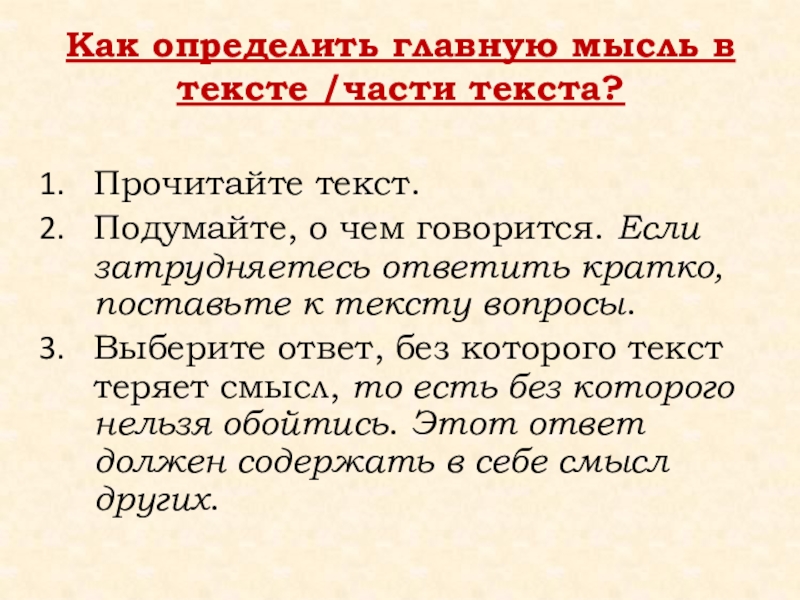 Слайд 42Как определить главную мысль в тексте /части текста?