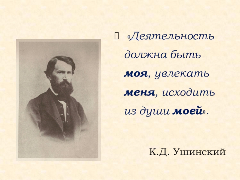 Слайд 51 «Деятельность должна быть моя, увлекать меня, исходить из души моей».