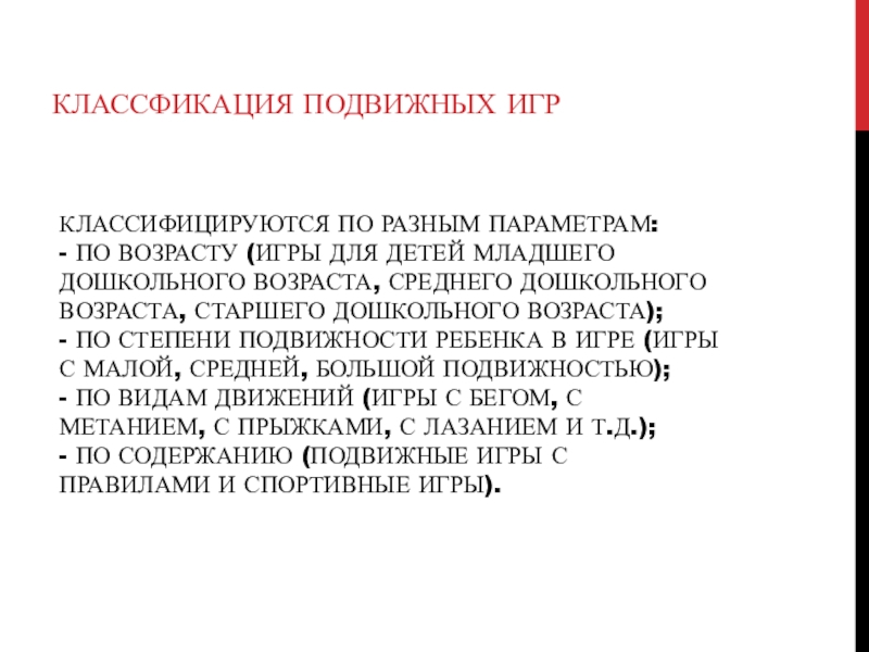 КЛАССФИКАЦИЯ ПОДВИЖНЫХ ИГР