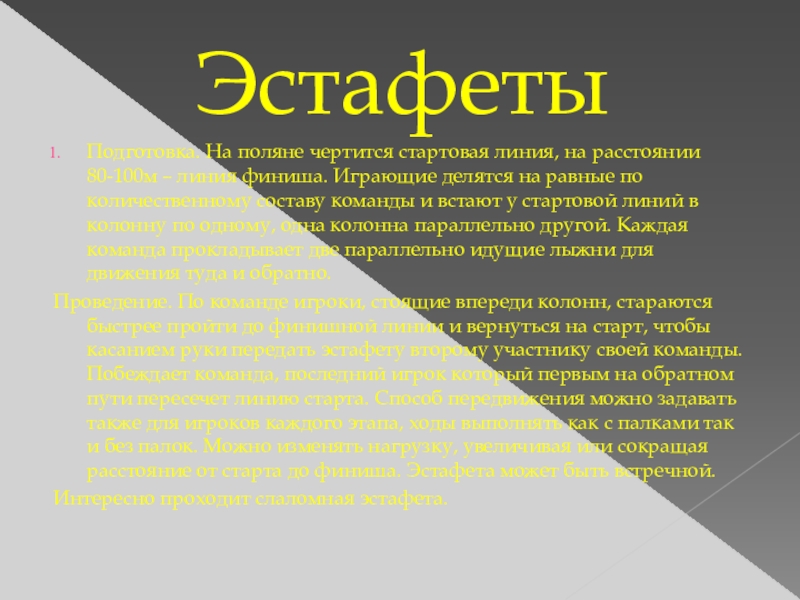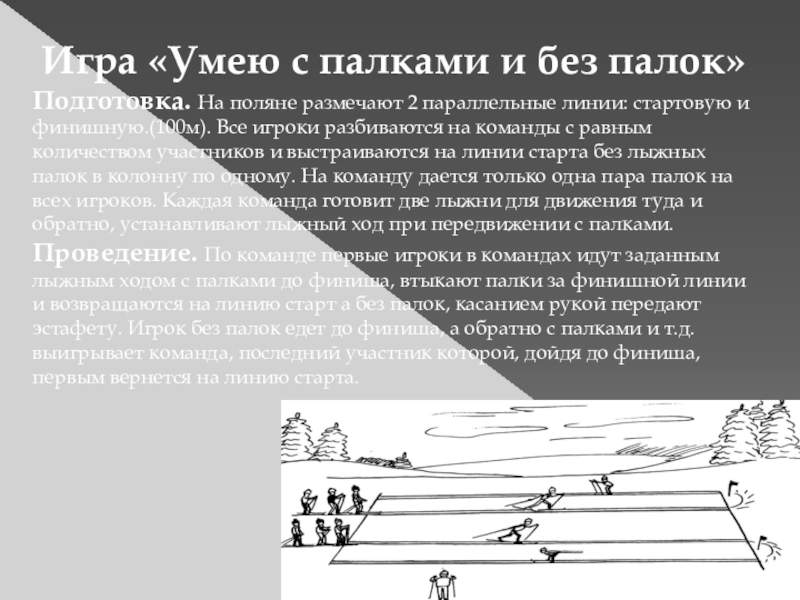Слайд 3Подвижные игры на лыжах чаще всего не требуют от участников специальной
