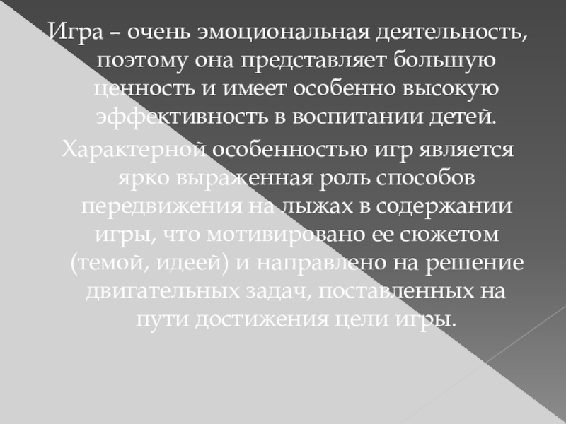 Слайд 2 Игра – очень эмоциональная деятельность, поэтому она представляет большую ценность