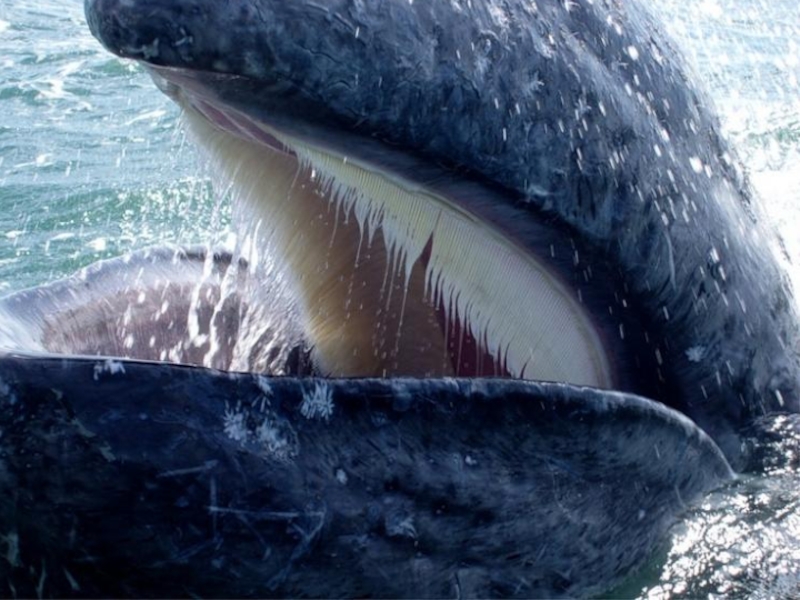 Синий кит является типичным представителем усатых китов, питающихся планктоном.
