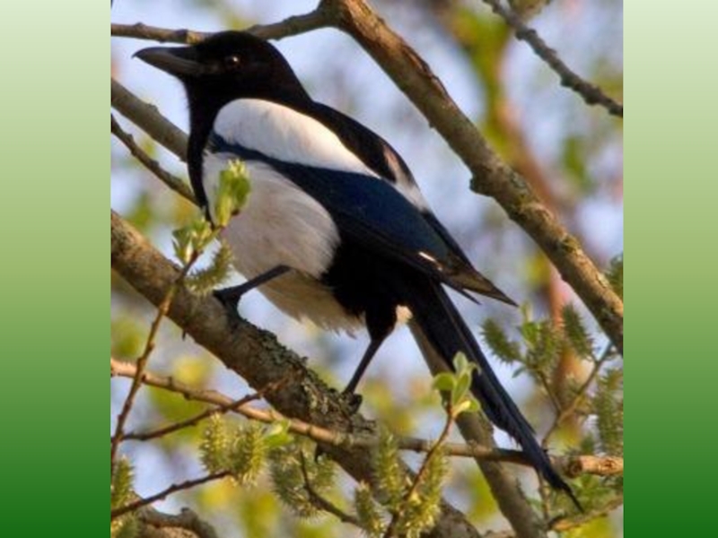 Слайд 14Сорока считается одной из самых интеллектуальных птиц.