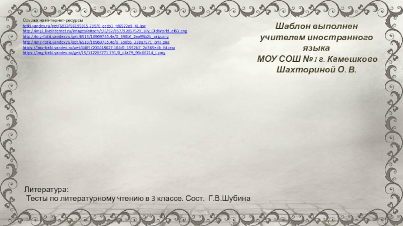 Тесты по литературному чтению в 3 классе. Сост. Г.В.Шубина