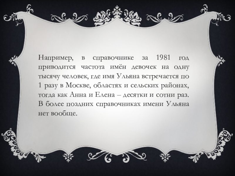 Слайд 7Например, в справочнике за 1981 год приводится частота имён девочек на