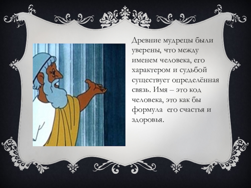 Слайд 4Древние мудрецы были уверены, что между именем человека, его характером и