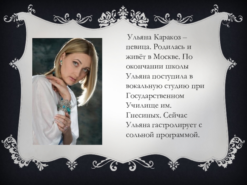 Слайд 20 Ульяна Каракоз – певица. Родилась и живёт в Москве. По