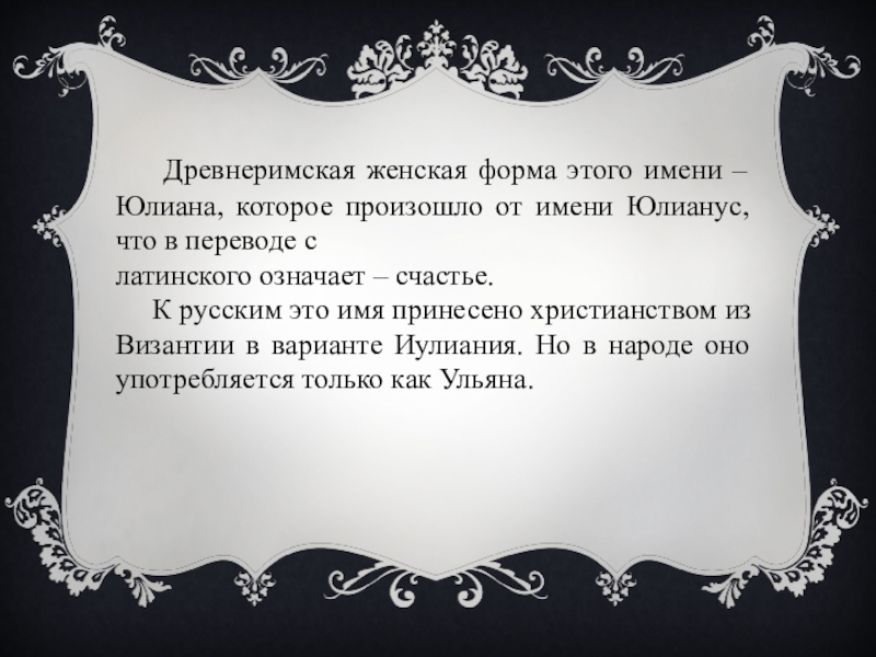 Слайд 9 Древнеримская женская форма этого имени – Юлиана, которое произошло