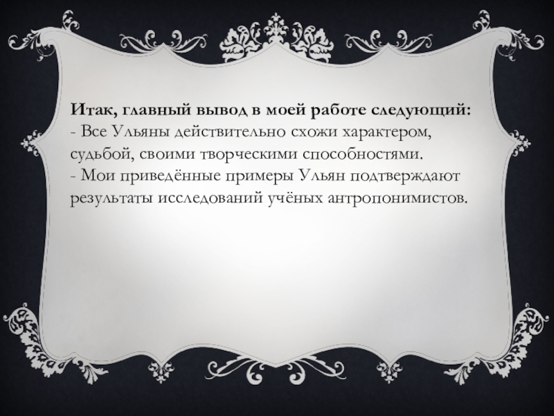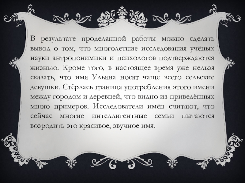 - Мои приведённые примеры Ульян подтверждают результаты исследований учёных антропонимистов.