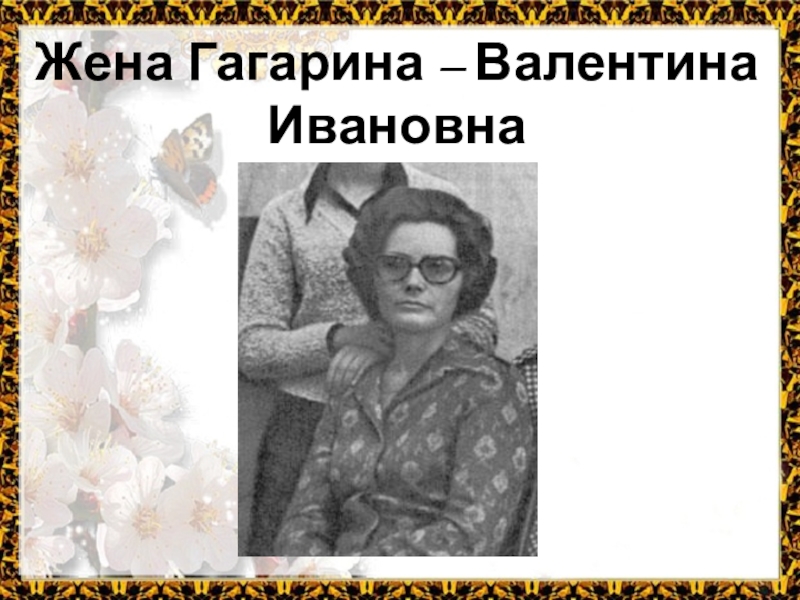 Слайд 15Жена Гагарина – Валентина Ивановна