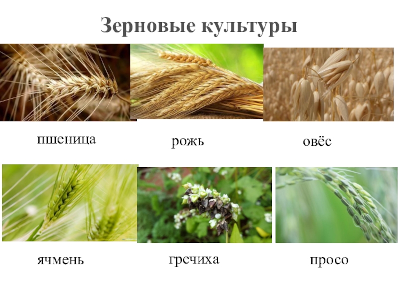 Зерновые культурыпшеницагречихаячменьовёсрожьпросо