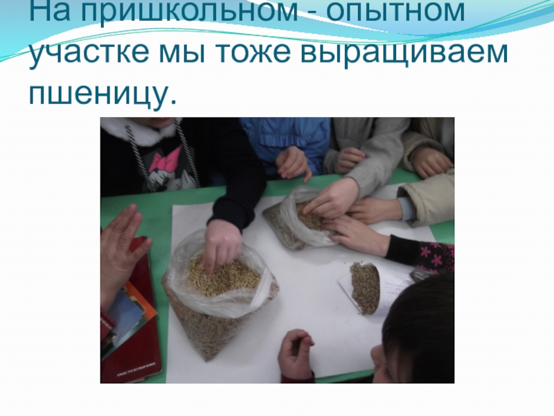 Слайд 21На пришкольном - опытном участке мы тоже выращиваем пшеницу.