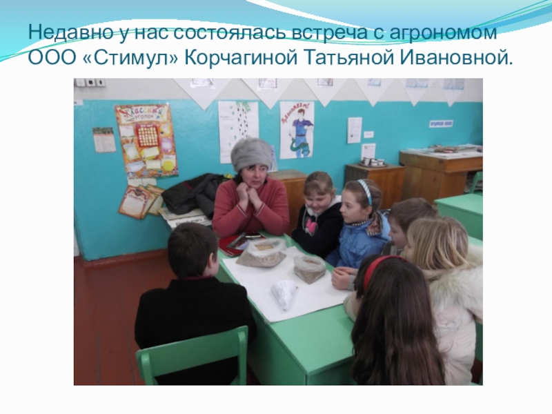 Слайд 5Недавно у нас состоялась встреча с агрономом ООО «Стимул» Корчагиной Татьяной