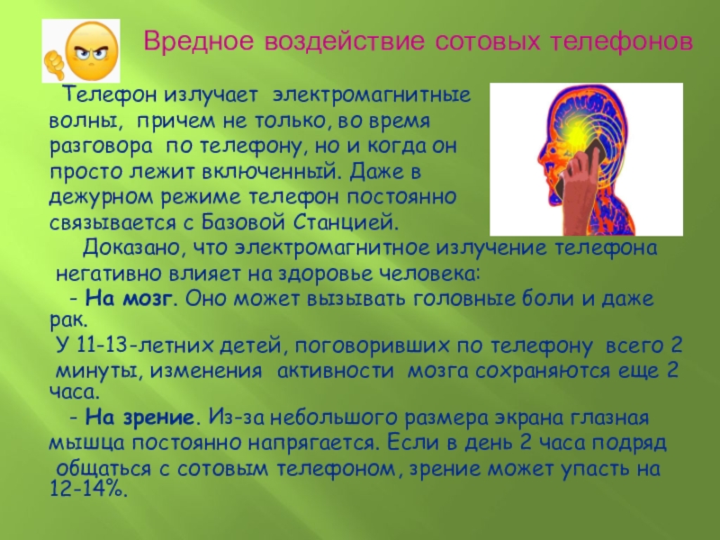вредное воздействие сотовых телефонов.