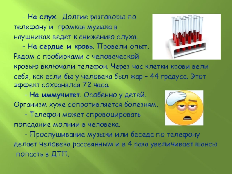 Слайд 7 Вредное воздействие сотовых телефонов