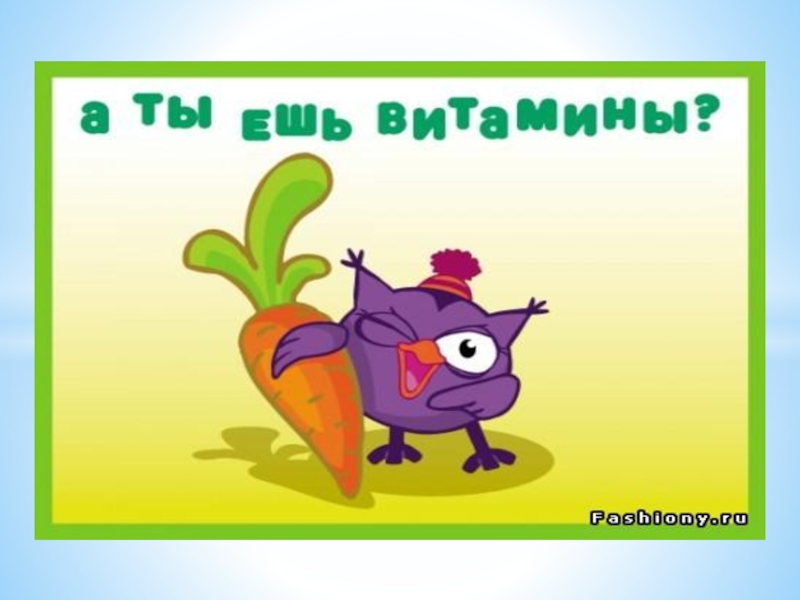 Слайд 5 Какие витамины существуют?  Витамин  А –это витамин роста. Ещё он помогает нашим глазам