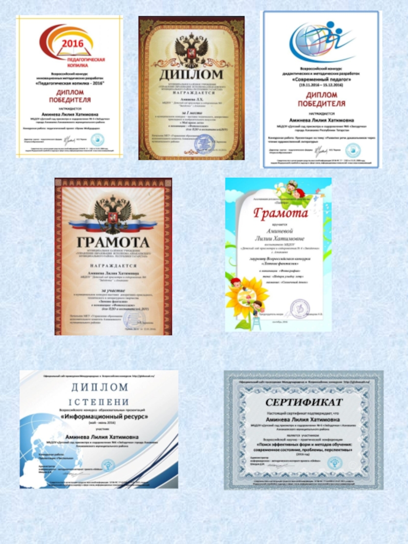 2016 год, участие во Всероссийском конкурсе образовательных презентаций «Информационный ресурс». Диплом I степени.