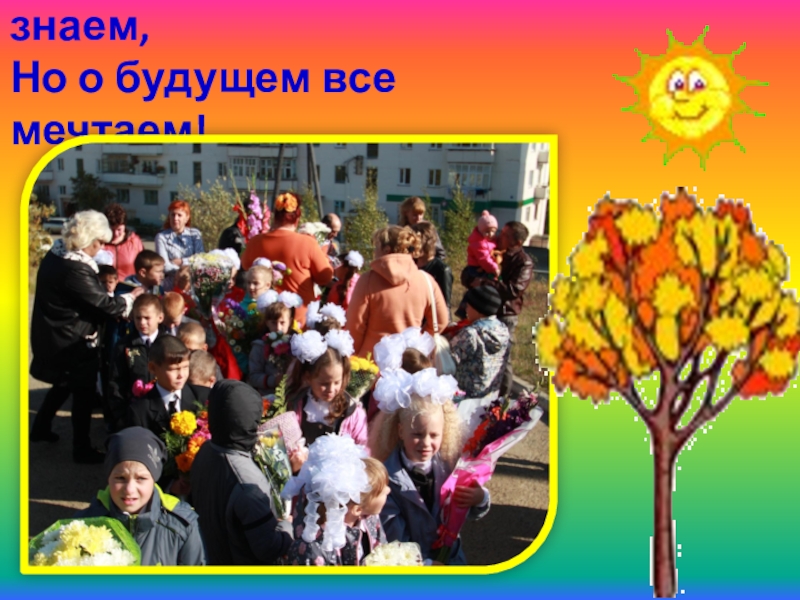 Слайд 2Мы друг друга ещё не знаем, Но о будущем все мечтаем!