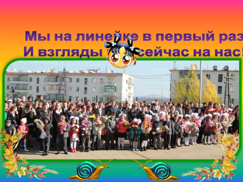Мы на линейке в первый раз И взгляды все сейчас на нас!