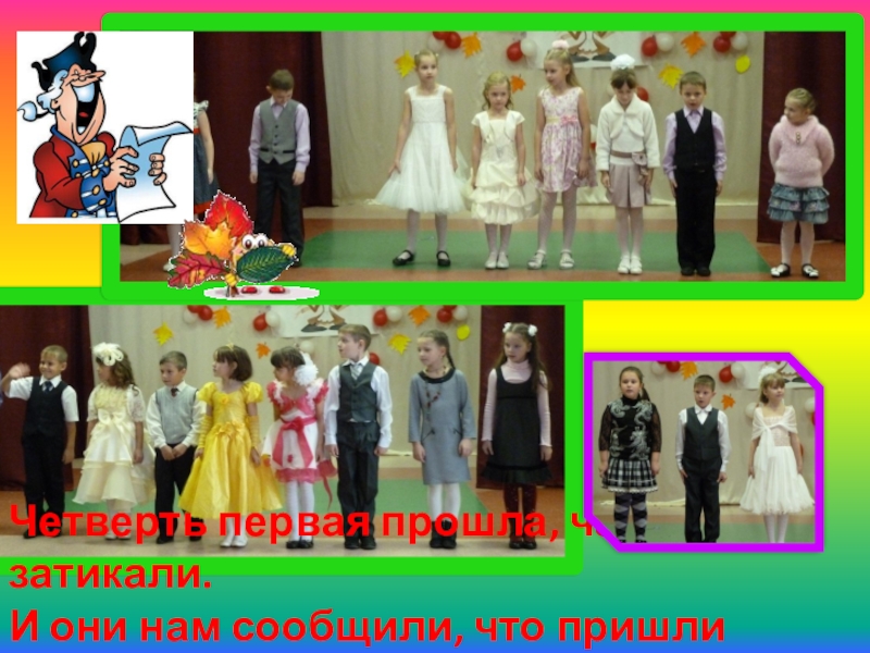 Слайд 9Четверть первая прошла, часики затикали. И они нам сообщили, что пришли каникулы.