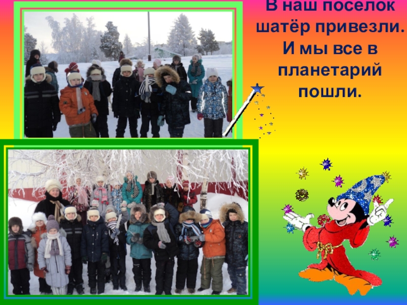 Слайд 18В наш посёлок шатёр привезли. И мы все в планетарий пошли.